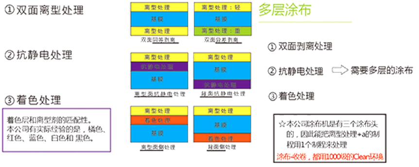 可做雙面抗靜電及離型處理 ;